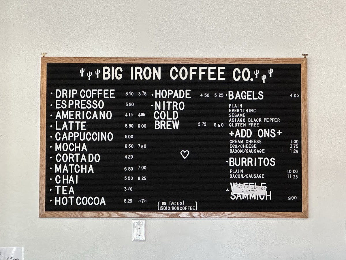 The menu at Big Iron Coffee Co. in Steamboat Springs offers a cozy yet refined selection of coffee beverages that appeal to a variety of tastes. For those who prefer a classic start to their day, the Latte is a must-try, offering a creamy blend of espresso and steamed milk. Another standout is the Espresso, perfect for those seeking a more intense, bold coffee experience. For a drink that strikes a balance between strong coffee and smooth milk, the Cortado is a fantastic option, with its rich espresso paired harmoniously with a small amount of warm milk. These signature drinks are crafted with care, showcasing the quality and expertise of the baristas at Big Iron Coffee Co. Whether you're in the mood for something creamy or a more straightforward coffee, their menu has something to satisfy every preference.